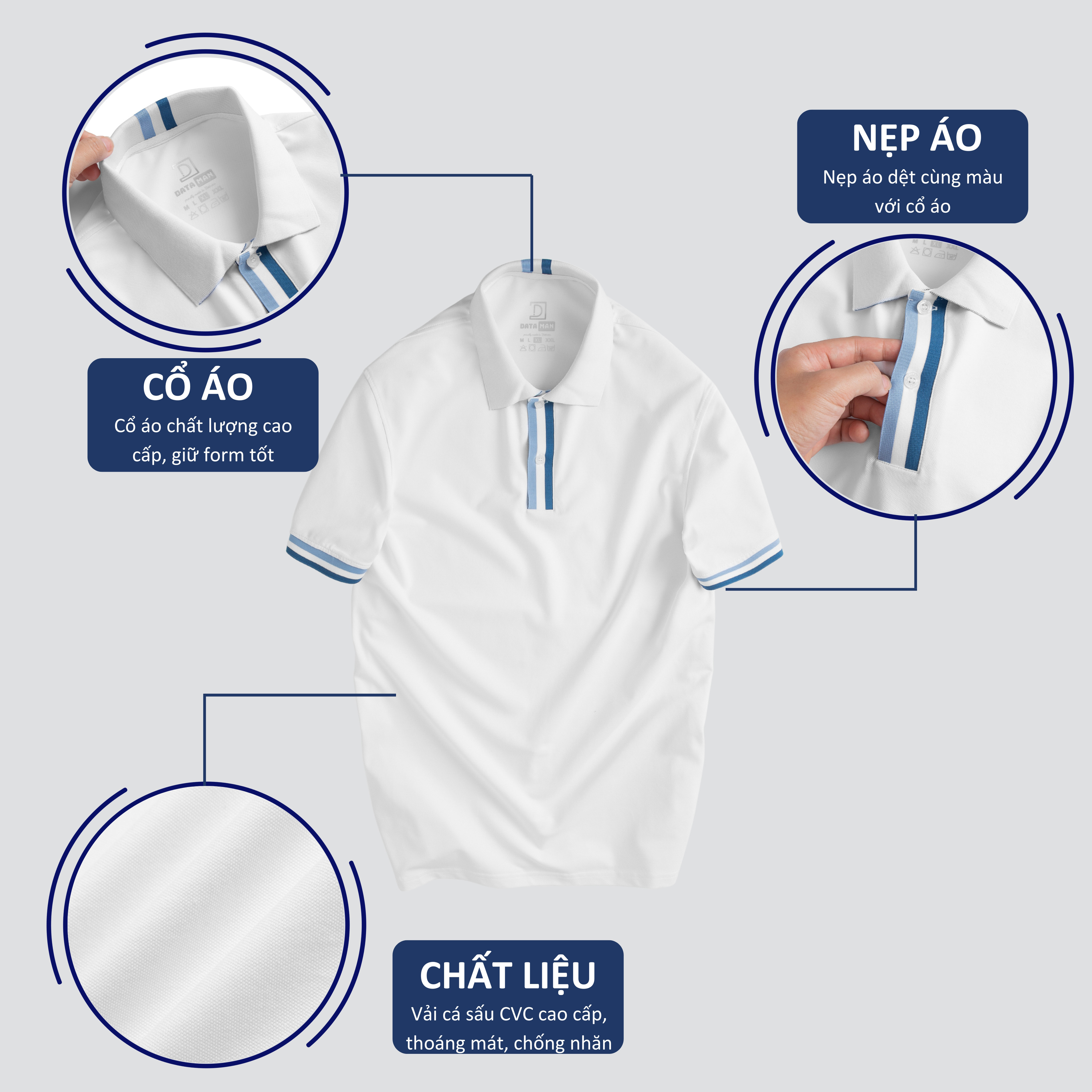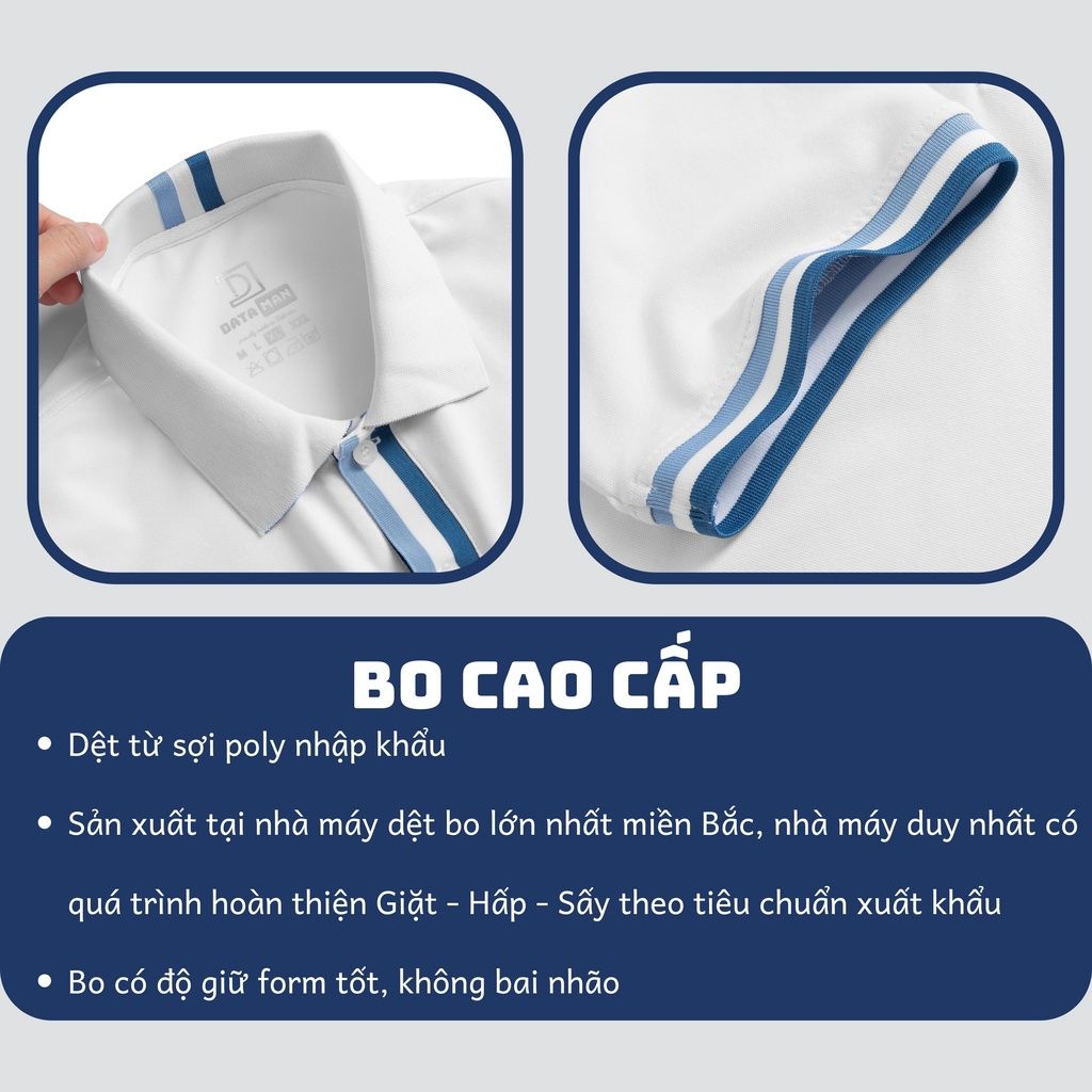 Áo Polo Nam DATAMAN trơn cổ bẻ, nẹp dệt, vải cá sấu CVC cao cấp, form slimfit - PLV2308