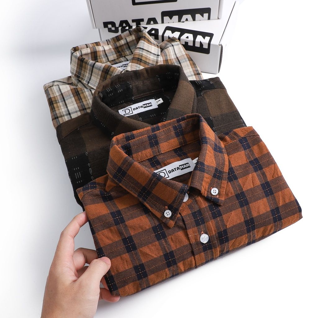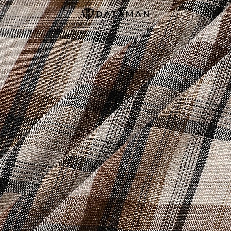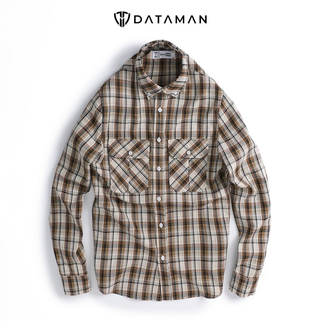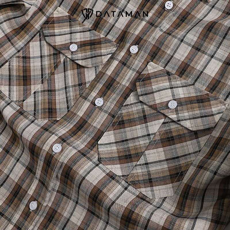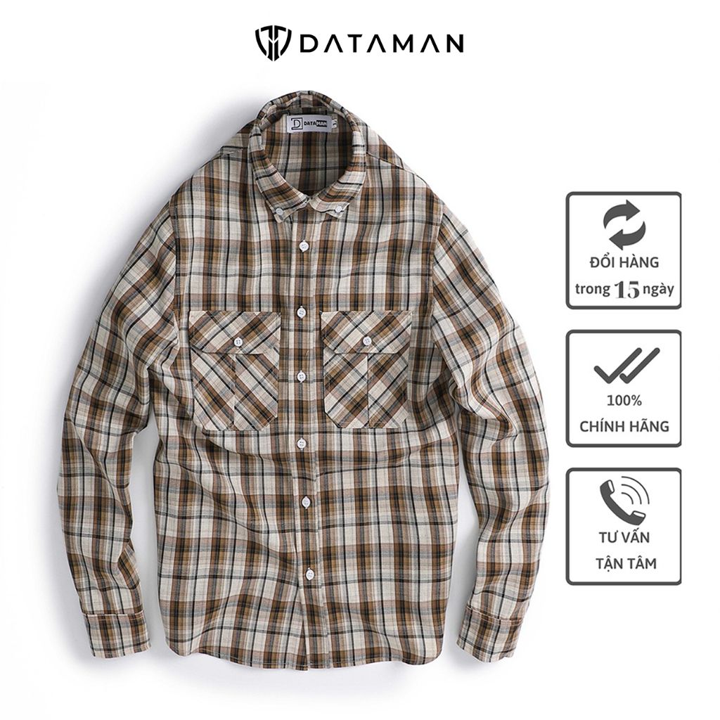 Áo sơ mi nam dài tay caro trắng nâu DATAMAN, 2 túi ngực - SMDT22-05